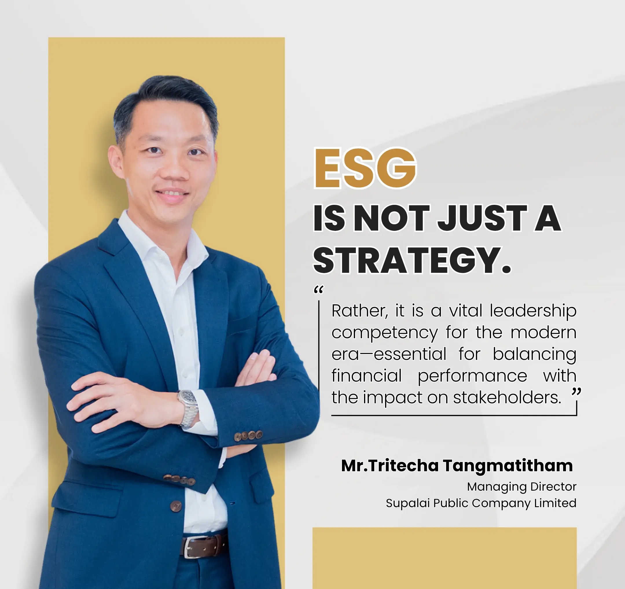 Moving forward, Supalai aims to develop an ESG Data Platform to support quantitative data reporting in alignment with additional international standards, such as TCFD, ISSB, GRI, and the FTSE ESG Model. Furthermore, the Company is committed to establishing an ESG Talent Pipeline to cultivate a new generation of talent who possess a comprehensive understanding of both business operations and sustainability.