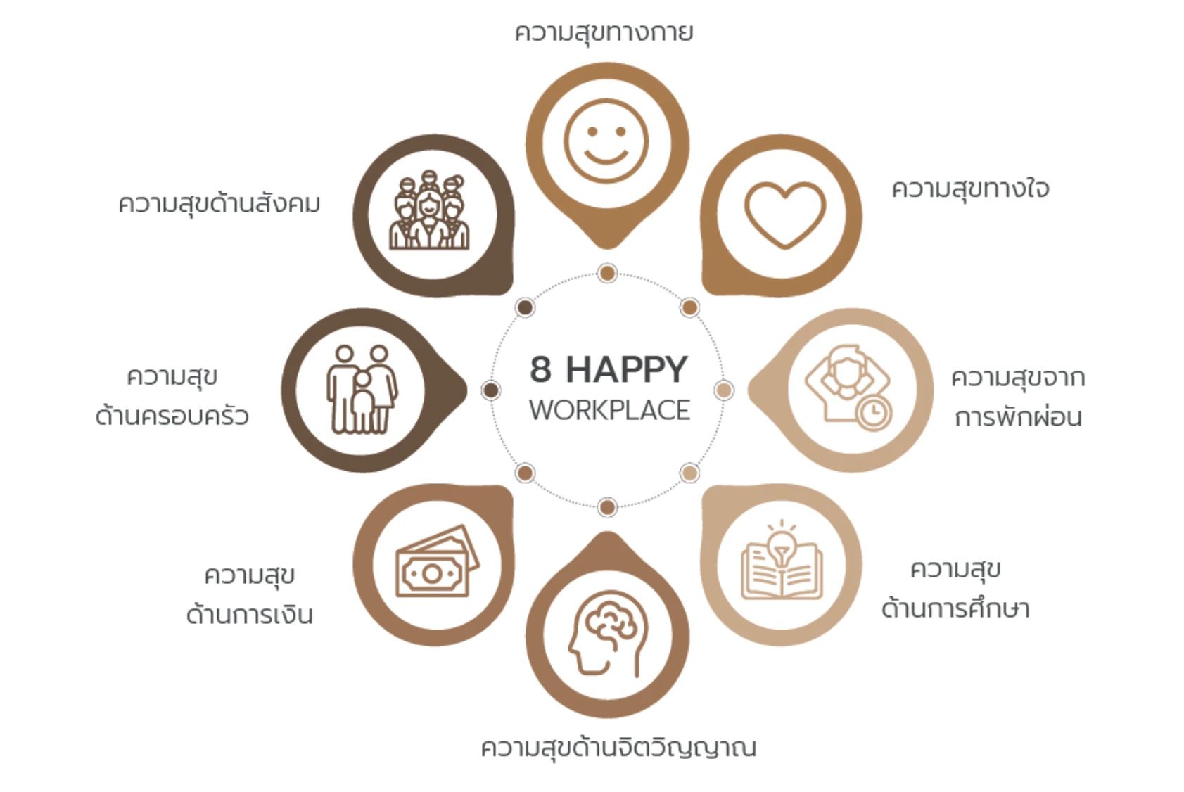 บริษัทฯ ให้ความสำคัญกับสวัสดิการและสุขภาพของพนักงานทุกระดับอย่างเท่าเทียม เพื่อสร้างสมดุลชีวิตและการทำงาน (Work-Life Balance) พนักงานมีสุขภาพแข็งแรงและมีความสุขในการทำงาน ซึ่งช่วยเพิ่มประสิทธิภาพและผลลัพธ์ขององค์กร โดยยึดแนวคิดว่าพนักงานคือทรัพยากรบุคคลสำคัญในการขับเคลื่อนองค์กร พร้อมยึดหลักความสุข 8 ประการเป็นแนวทาง